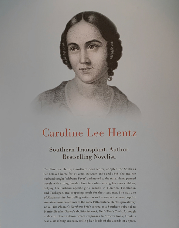 The exhibit notes that “The Planter’s Northern Bride” was a pro-slavery “rebuttal to Harriet Beecher Stowe’s abolitionist work, Uncle Tom’s Cabin . . . [and] was a smashing success, selling hundreds of copies.” None of Ms. Hentz’s other works are mentioned in the exhibit.